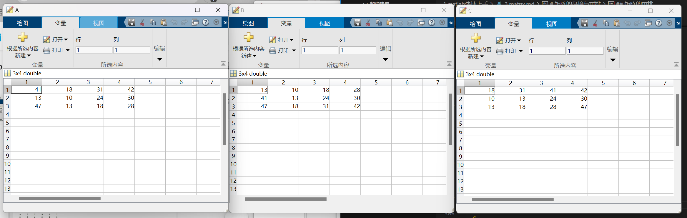 可以发现重排时按照线性索引对函数进行重排,即一列一列地放。