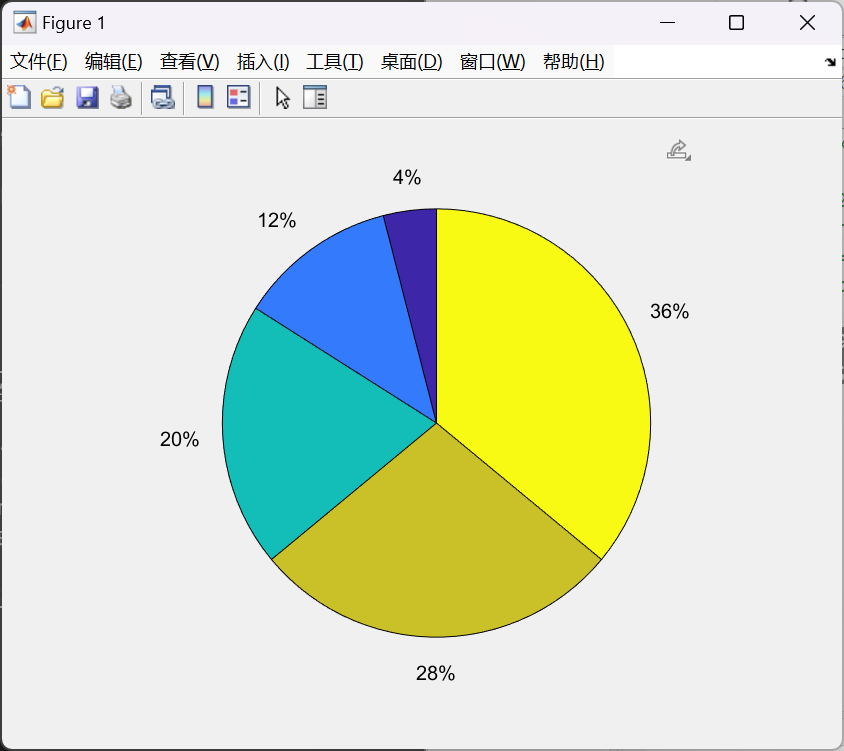如果 sum (X) ≤ 1,X 中的值直接指定饼图扇区的面积。如果 sum (X) < 1,pie 仅绘制部分饼图。