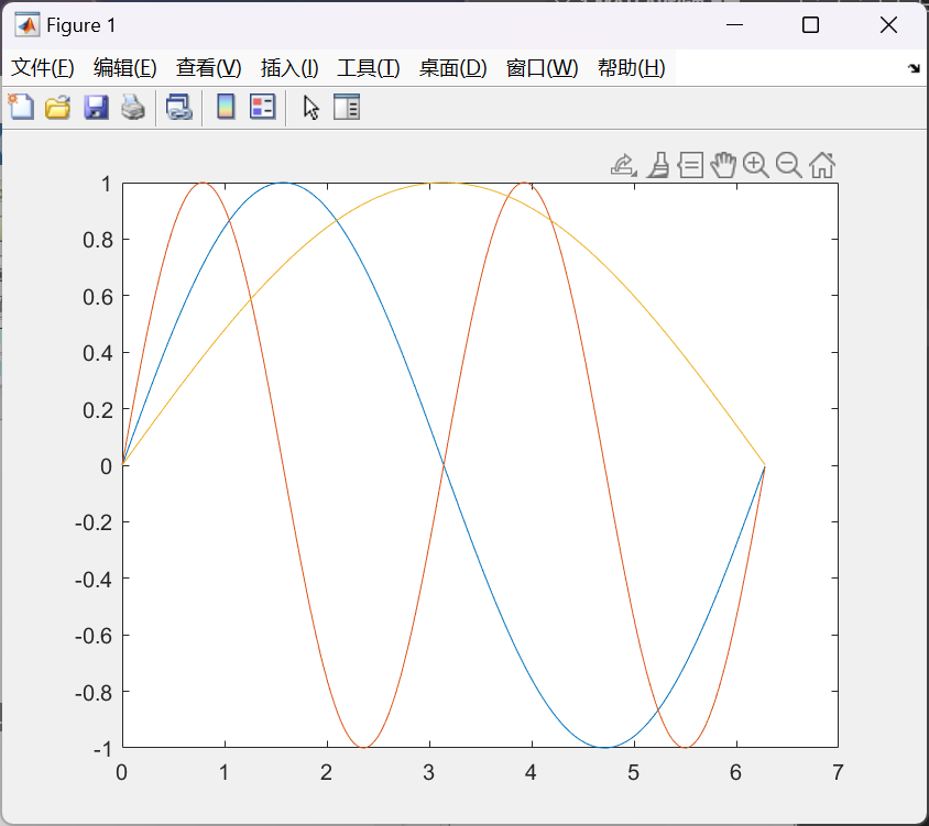 axis([0,7,-1.5,1.5]); % 选定坐标区间范围 | |
