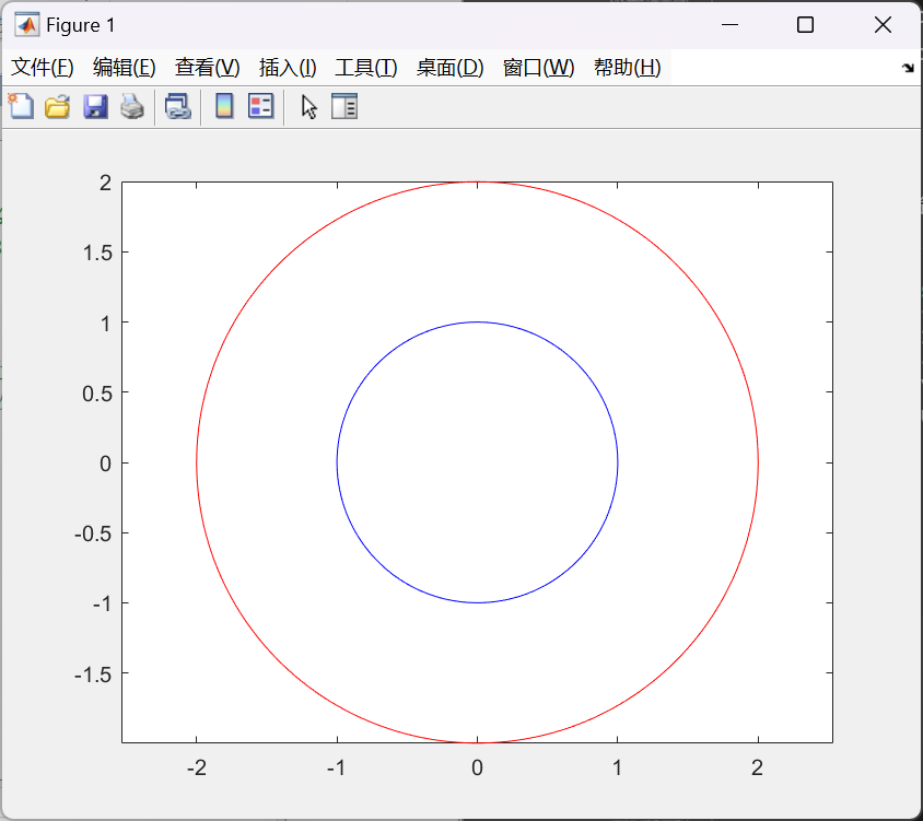 使用 hold 命令绘制一个同心圆