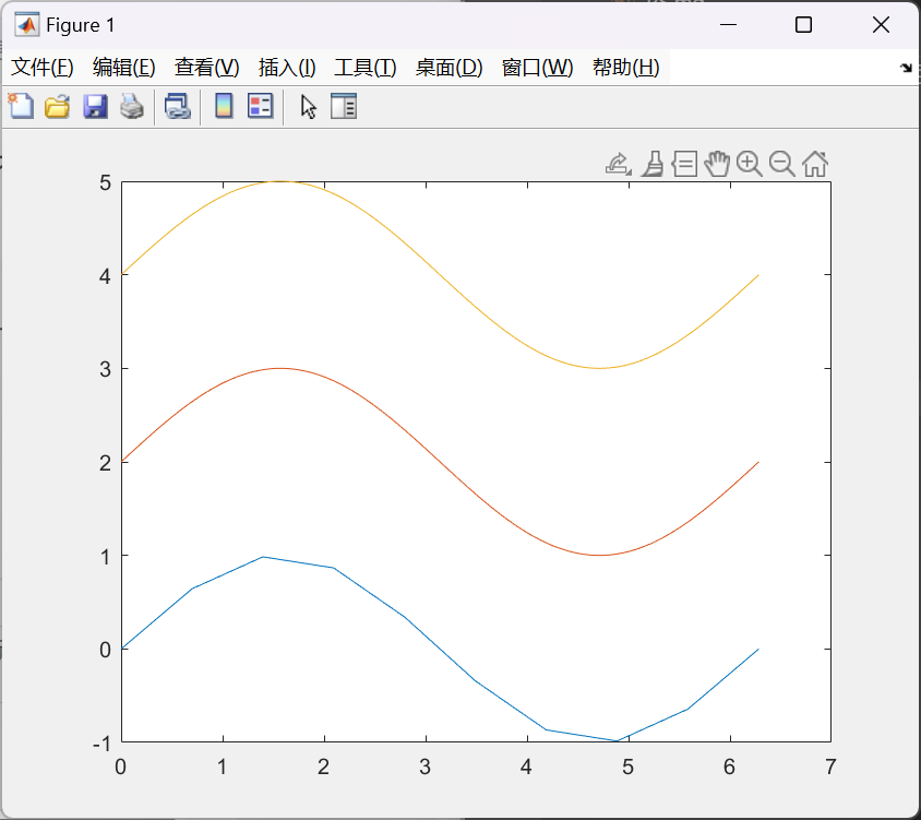 plot(x1,y1,x2,y2+2,x3,y3+4); |