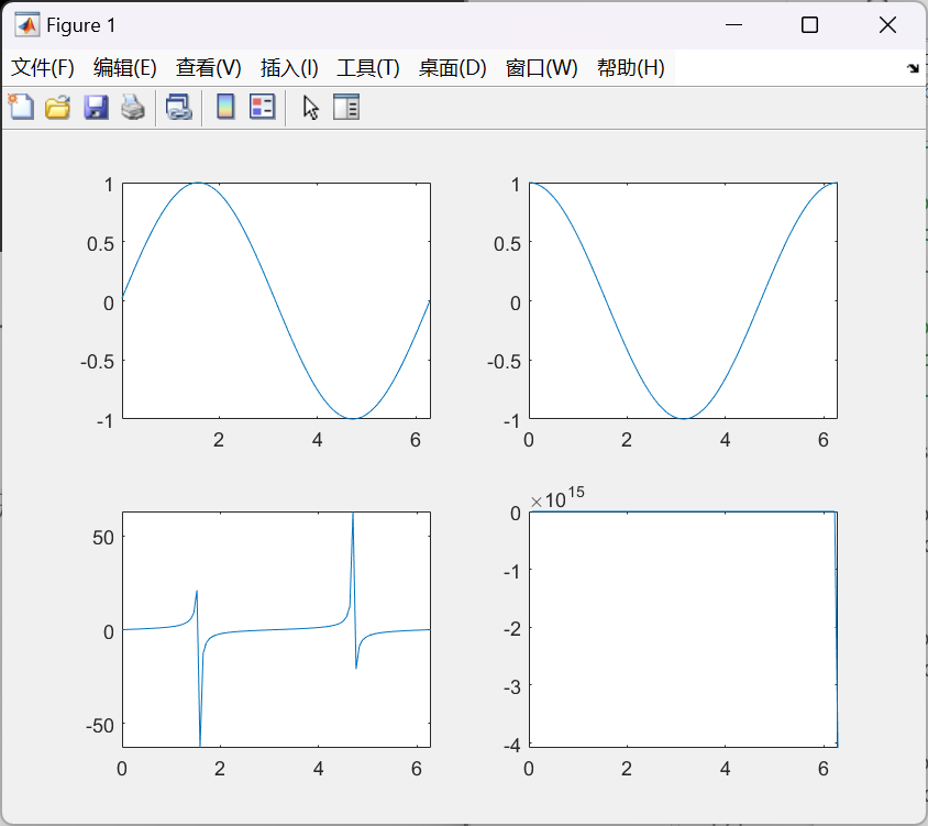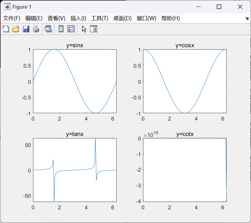 在一个图形窗口中绘制四个图像分别为